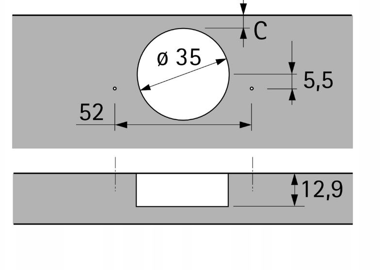 Zawias automatyczny z techniką montażu na prowadnik typu clip ze zintegrowanym cichym domykiem Regulacja wysokości Głębokość puszki: 12,8 mm Sensys – zawias standardowy 110° System cichego domyku Do płyt [gr.]: 15 – 24 mm Rozstaw nawierceń: 52 x 5,5 mm *Zdjęcia użyte są w celach poglądowych.
