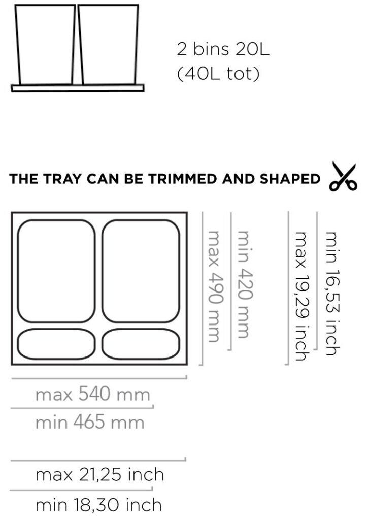 - Pojemność pojemników: 2 x 20 litrów