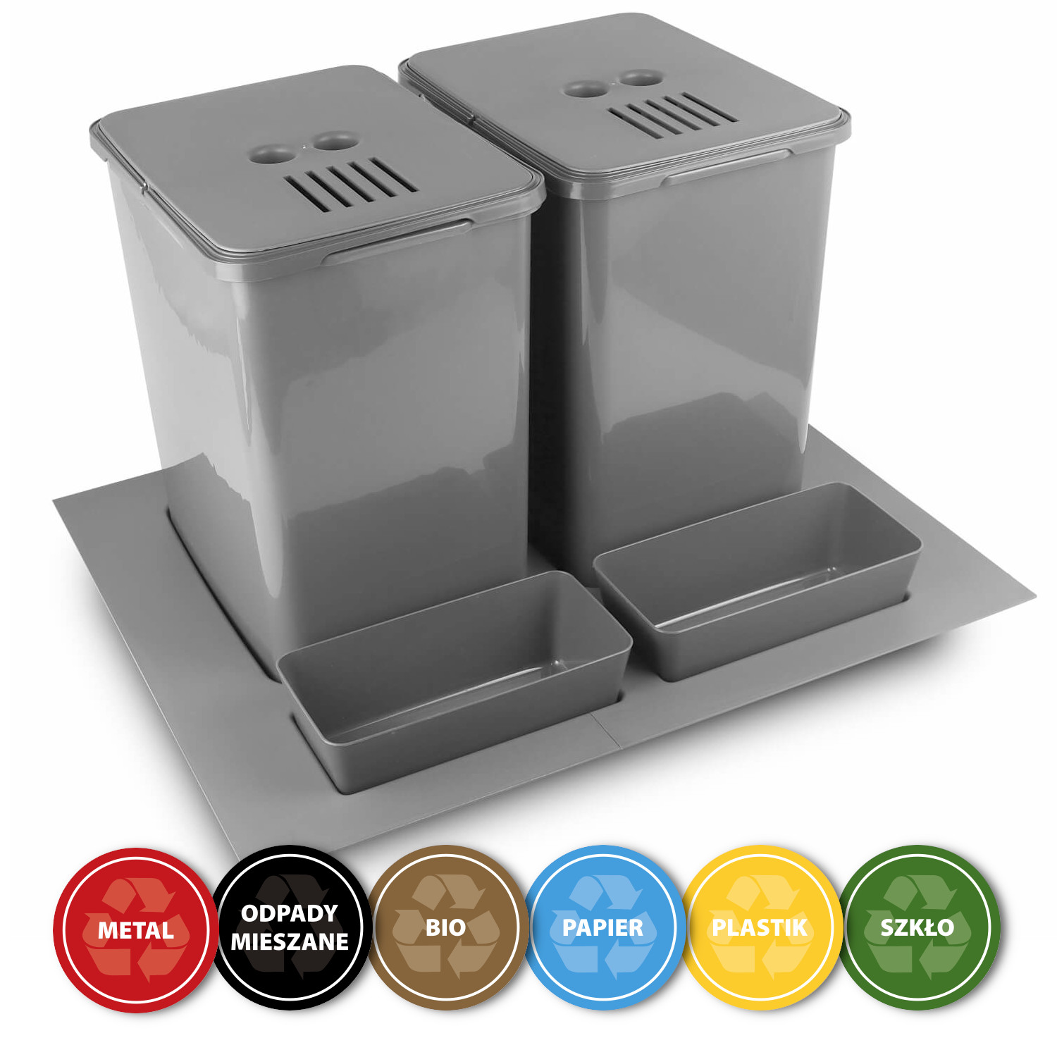 Sortownik, kosz na śmieci 2x20L do szafki 600mm + naklejki, filtr węglowy