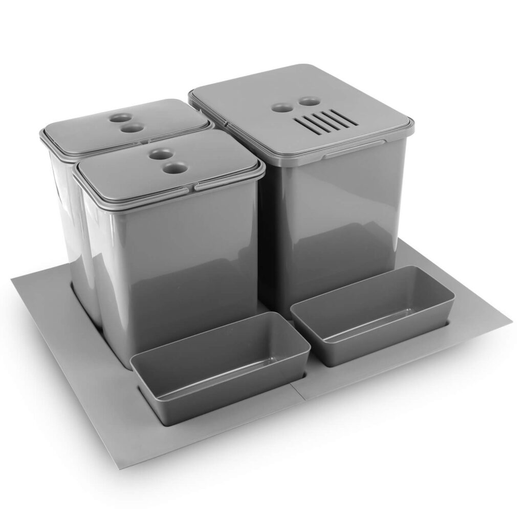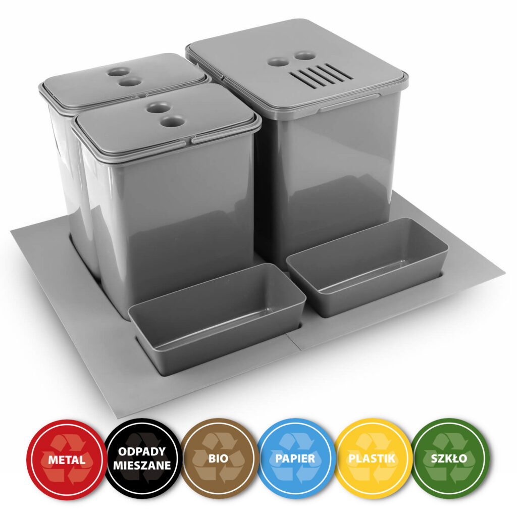 - Kolor: grafitowy – komponuje się z różnymi stylami wnętrz, zapewniając harmonijny wygląd i stwarzając atmosferę czystości. Dodatkowo, kolor grafitowy jest praktyczny, ponieważ łatwo maskuje ewentualne zabrudzenia, co niewątpliwie ułatwia utrzymanie sortownika w nienagannej czystości przez długi czas.