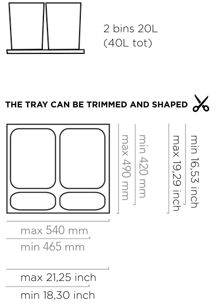 - Możliwość wyjmowania pojemników niezależnie, ułatwiająca opróżnianie i czyszczenie