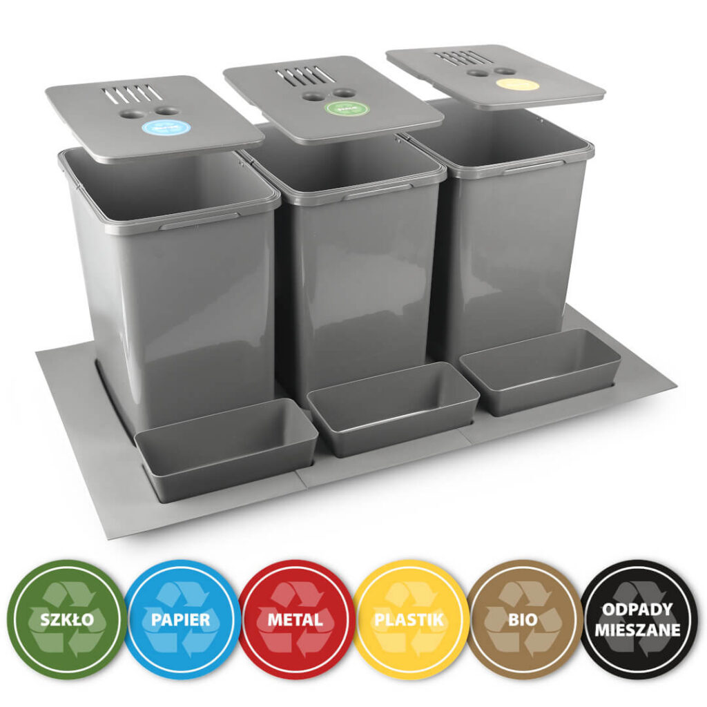 Sortownik, kosz na śmieci 3x20L do szafki 900mm + naklejki, filtr węglowy