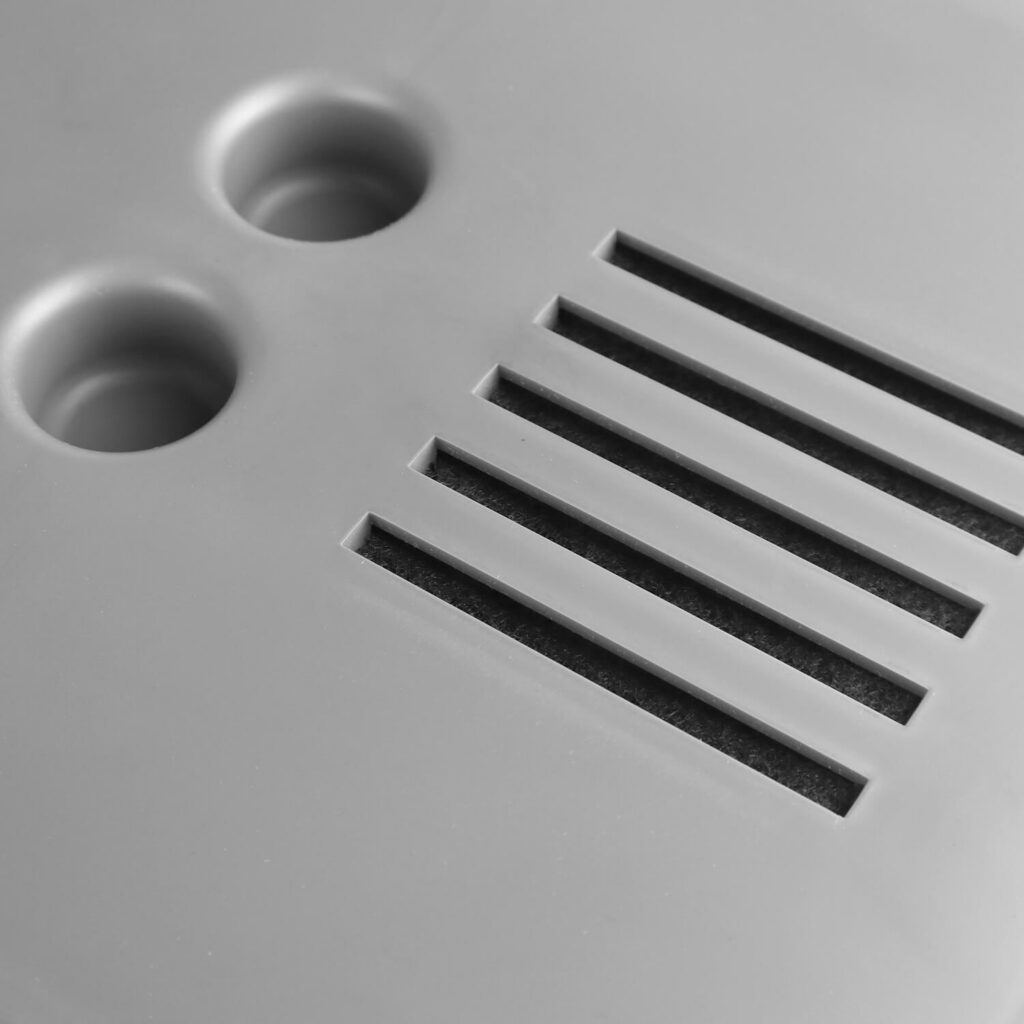 - Wbudowany filtr węglowy w pokrywie pojemników, eliminujący nieprzyjemne zapachy