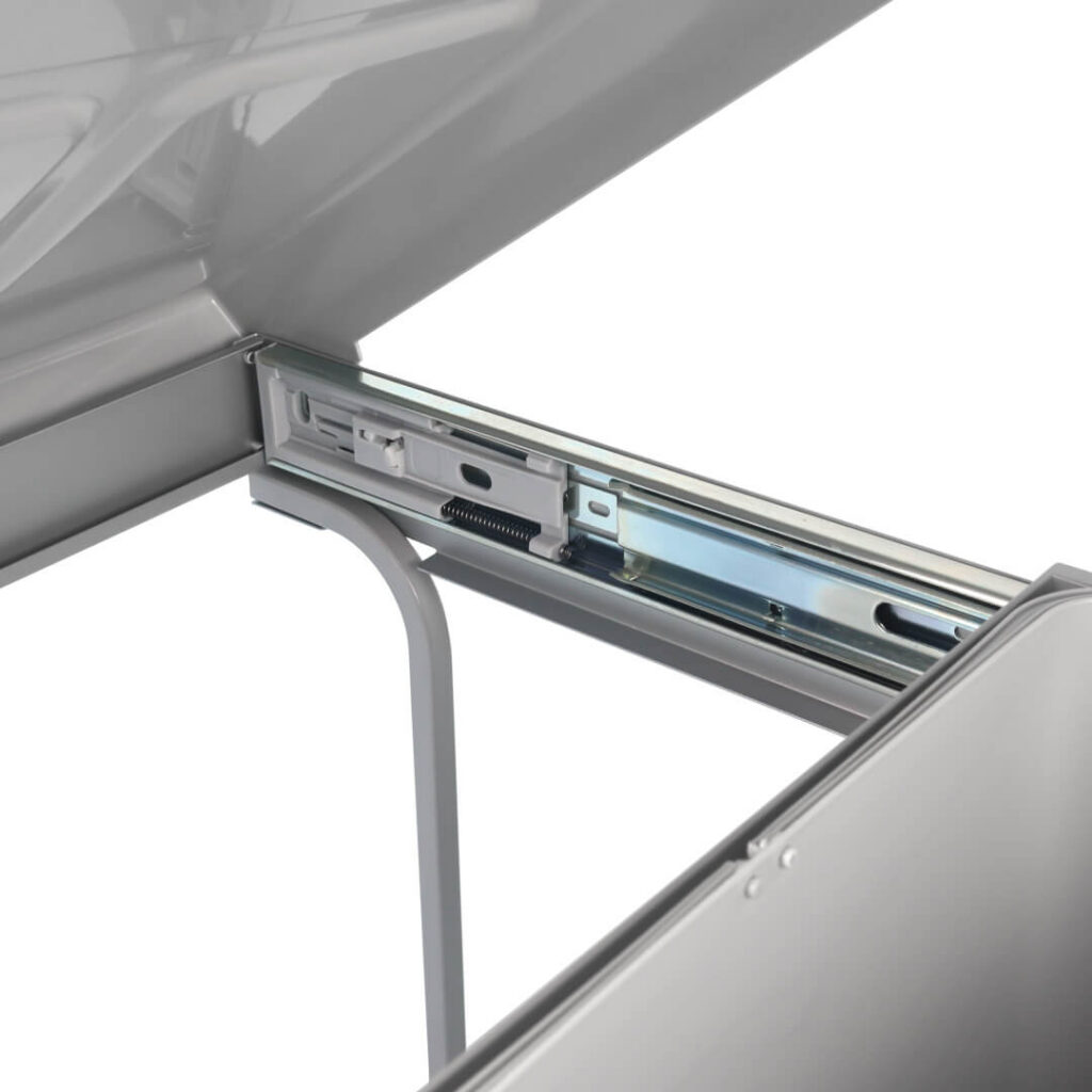 - Materiał: Szary stelaż stalowy, szara plastikowa pokrywa, szara plastikowa osłona uchwytu, szare plastikowe wiadra.
