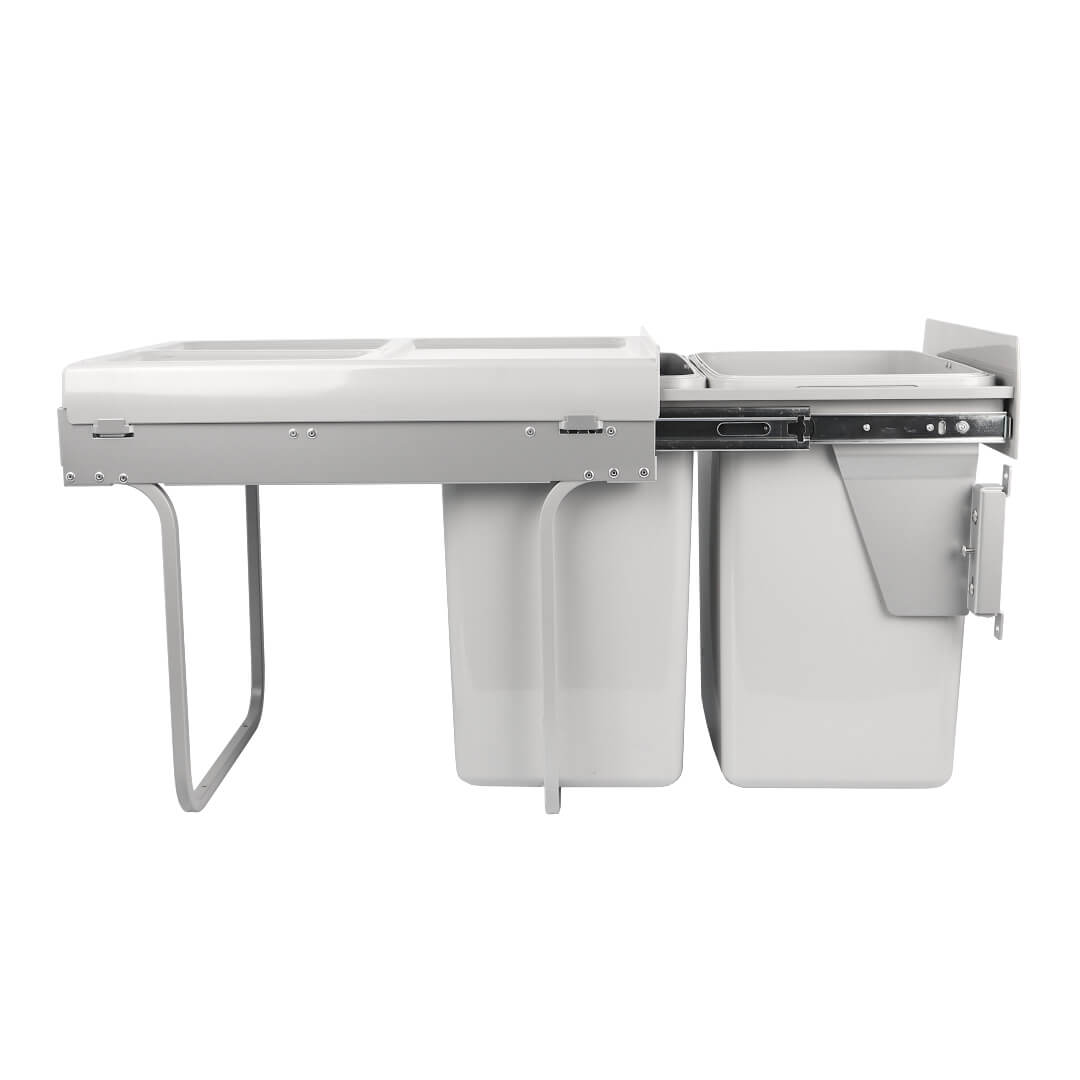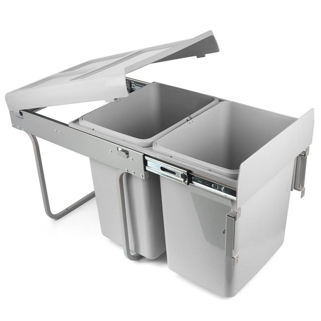 Prezentowany sortownik na śmieci został zaprojektowany specjalnie do szafek o szerokości wnęki min 40 cm (szerokość zewnętrzna szafki przy zastosowaniu boków z plyty 18mm).Jedną z głównych cech kosza jest pokrywa zbiorcza, która utrzymuje zapachy i nieprzyjemne widoki wewnątrz kosza. Kosz wyposażony jest również w dwa pojemniki o pojemności 2×20 litrów, co umożliwia łatwą segregację odpadów. Dzięki odpornym prowadnicom z wbudowanym systemem cichego domyku , kosz zamyka się bezgłośnie łagodnie i płynnie. Sortownik, kosz na śmieci Maxima mocowany bezpośrednio do frontu szafki dzięki załączonym mocowaniom .W zestawie znajdują się również akcesoria montażowe, które ułatwiają instalację kosza w szafce.Sortownik jest idealnym rozwiązaniem dla osób poszukujących praktycznego i estetycznego sposobu na skuteczną segregację odpadów w kuchni. Jego funkcjonalności sprawiają, że jest to doskonały wybór dla każdego, kto chce utrzymać porządek i dbać o środowisko.