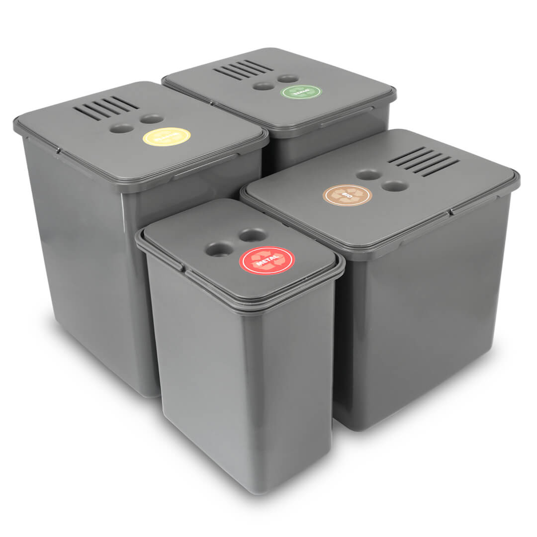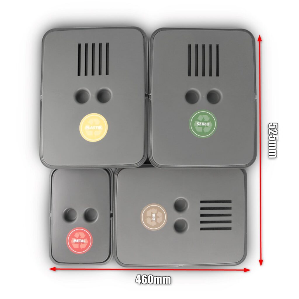 - Kolor: grafitowy – komponuje się z różnymi stylami wnętrz, zapewniając harmonijny wygląd i stwarzając atmosferę czystości. Dodatkowo, kolor grafitowy jest praktyczny, ponieważ łatwo maskuje ewentualne zabrudzenia, co niewątpliwie ułatwia utrzymanie sortownika w nienagannej czystości przez długi czas.