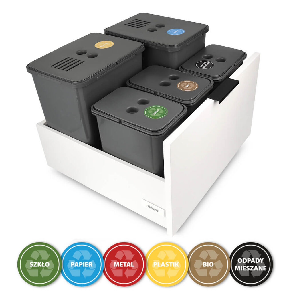 Strona główna > Produkty > Akcesoria meblowe > Wyposażenie kuchni > Sortowanie śmieci > Sortownik, kosz na śmieci z filtrem węglowym do szuflady blum 600mm, 61L