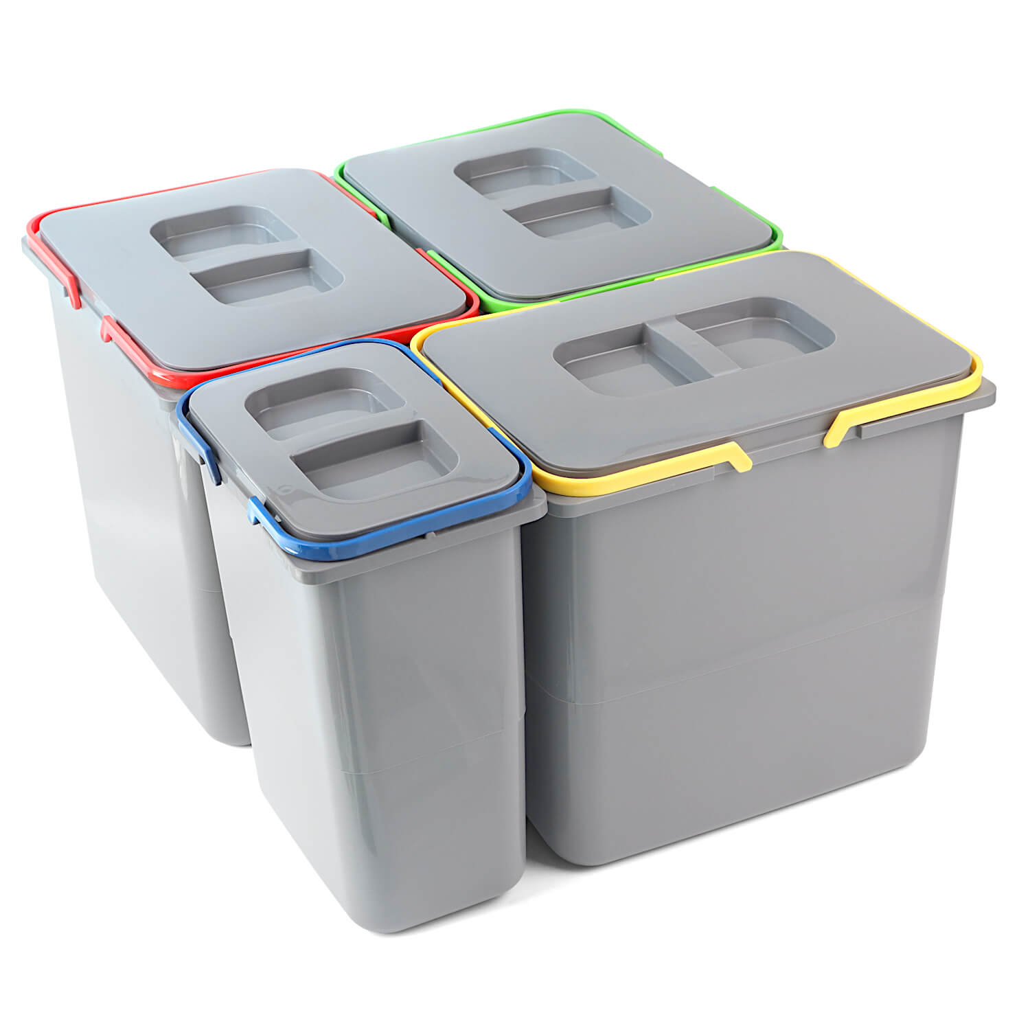 - Komfort użytkowania – ergonomiczne uchwyty sortowników na śmieci ułatwiają wyciąganie koszy z szuflady lub szafki oraz zapewniają komfortowe użytkowanie.
