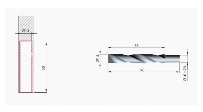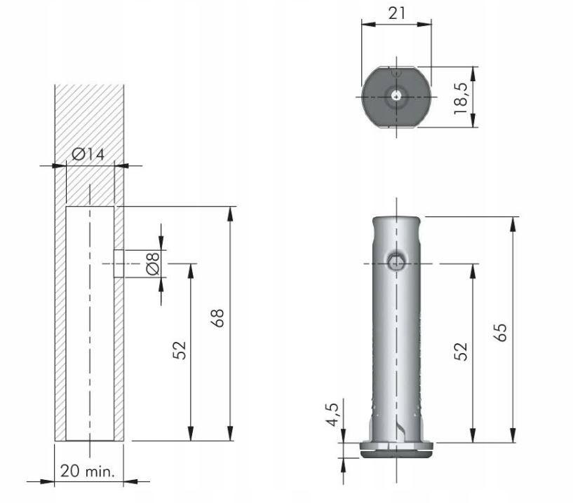 • Nadaje się do płyty o grubości minimum 20 mm, otwór montażowy o średnicy 14 mm