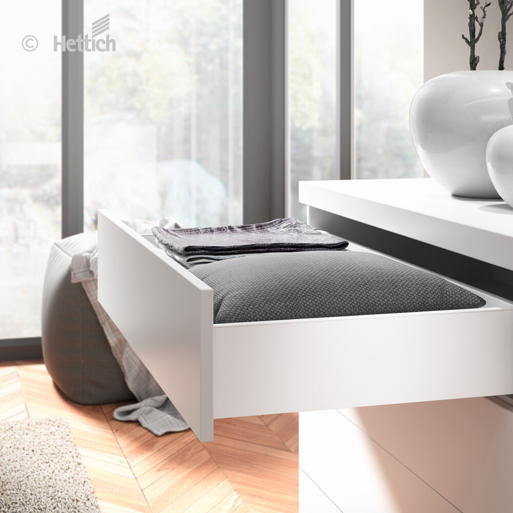 Nowy system szuflad cienkościennych AvanTech YOU z prowadnicami Quadro wyróżnia różnorodny design i swoboda projektowania, ukryta technika i doskonała jakość ruchu oraz optymalna, zorientowana na klienta koncepcja produktu. AvanTech YOU koncentruje się na Tobie, dostosowując się do Twoich indywidualnych potrzeb.