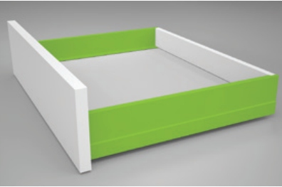 Szuflada dwuścienna o smukłym kształcie. W połączeniu z prowadnicami marki TEN gwarantują miękki ruch szuflady wraz z systemem SlowMotion.