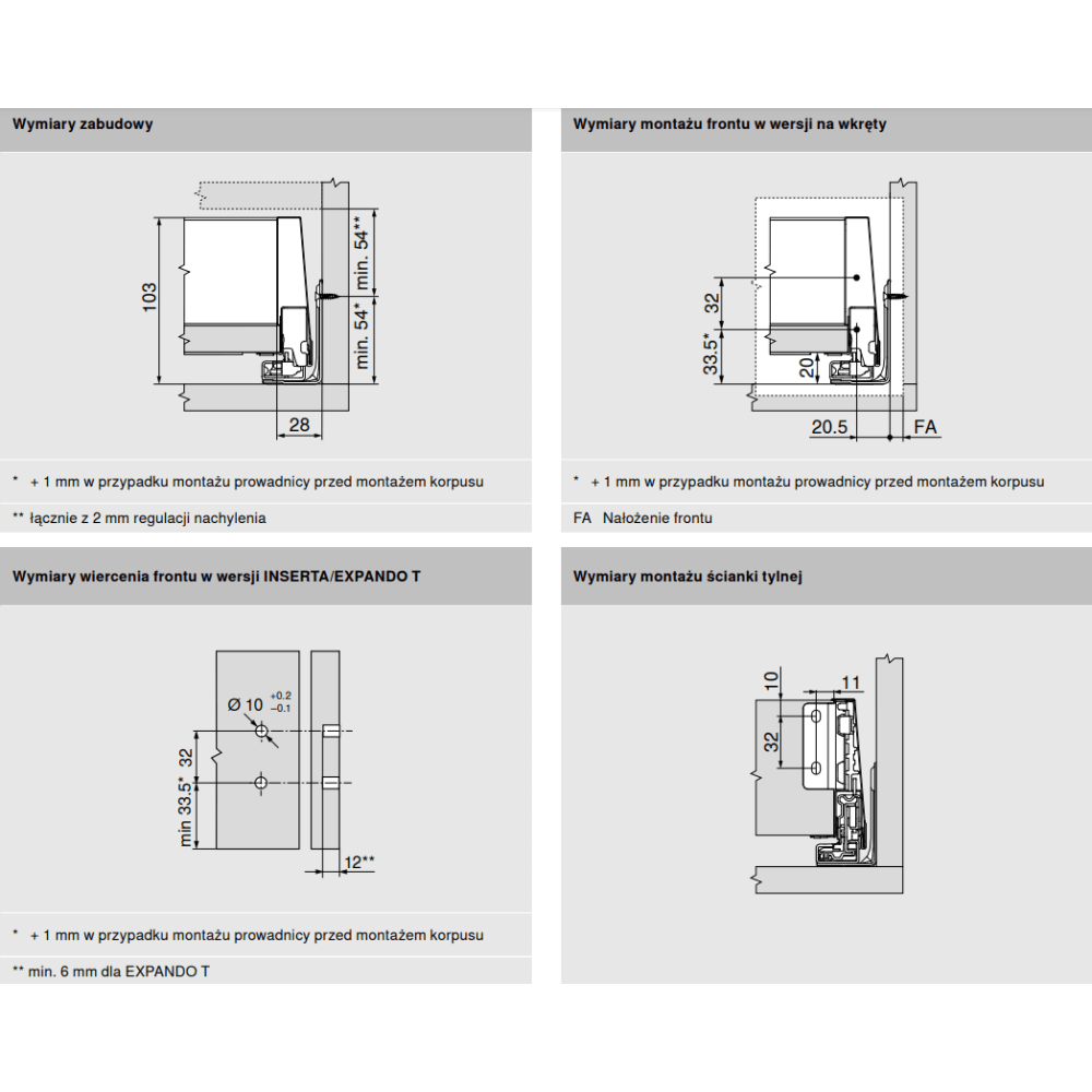 - Możliwość łączenia z technologiami ruchu TIP-ON BLUMOTION lub SERVO DRIVE