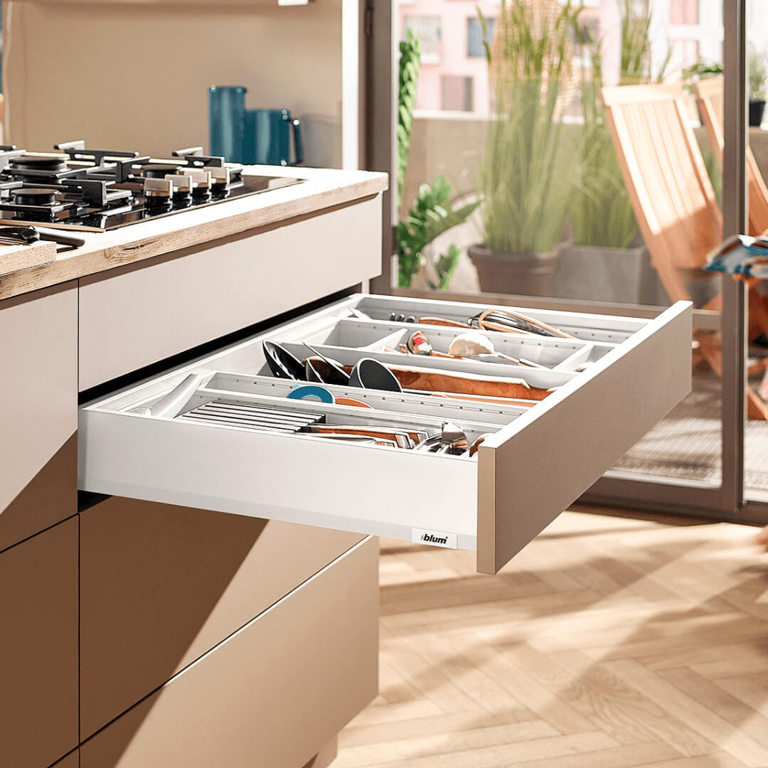 Szuflada Blum MERIVOBOX bazuje na koncepcji platformy, pozwalając zrealizować szeroki program rozwiązań przy niezmienionej obróbce i montażu. To upraszcza produkcję i zwiększa wydajność. Niezależnie od wybranego wariantu szuflady, montaż jest zawsze prosty z taką samą regulacją. Niezwykle łatwo osiągnąć precyzyjne wyniki.