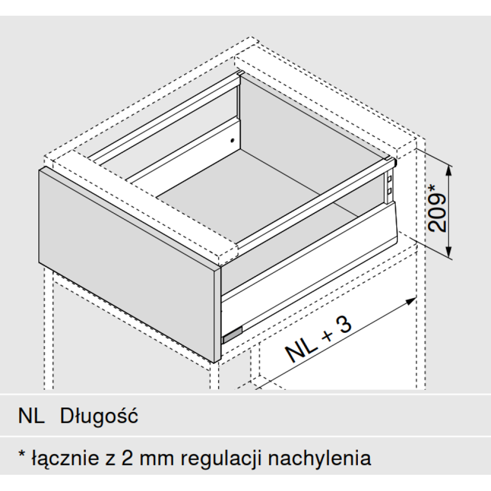 - Bok standardowy E – wymiary zabudowy w korpusie – 209mm (E)