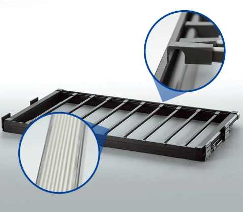 - możliwość regulacji szuflady, maksymalnie + 25 mm z każdej strony
