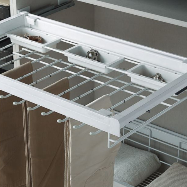 Szuflada wysuwana na spodnie z organizerem, 900mm, biała