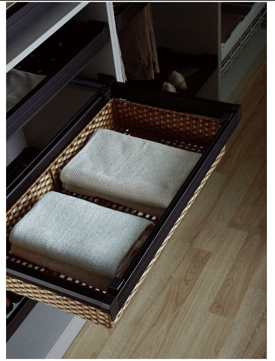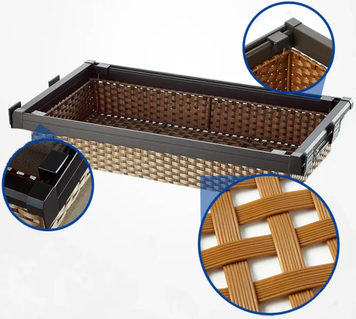 Szuflada wysuwana z koszem rattanowym, 800mm, H-170, mocca