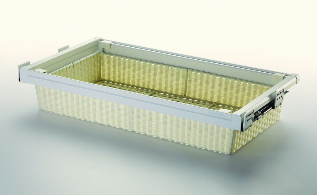 Szuflada wysuwana z koszem rattanowym – biała