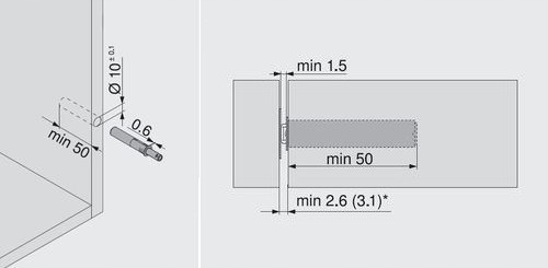 Wpuszczany amortyzator firmy BLUM, z magnesem, do frontów bez uchwytowych. Wykorzystywany w połączeniu z zawiasami bez sprężyny.