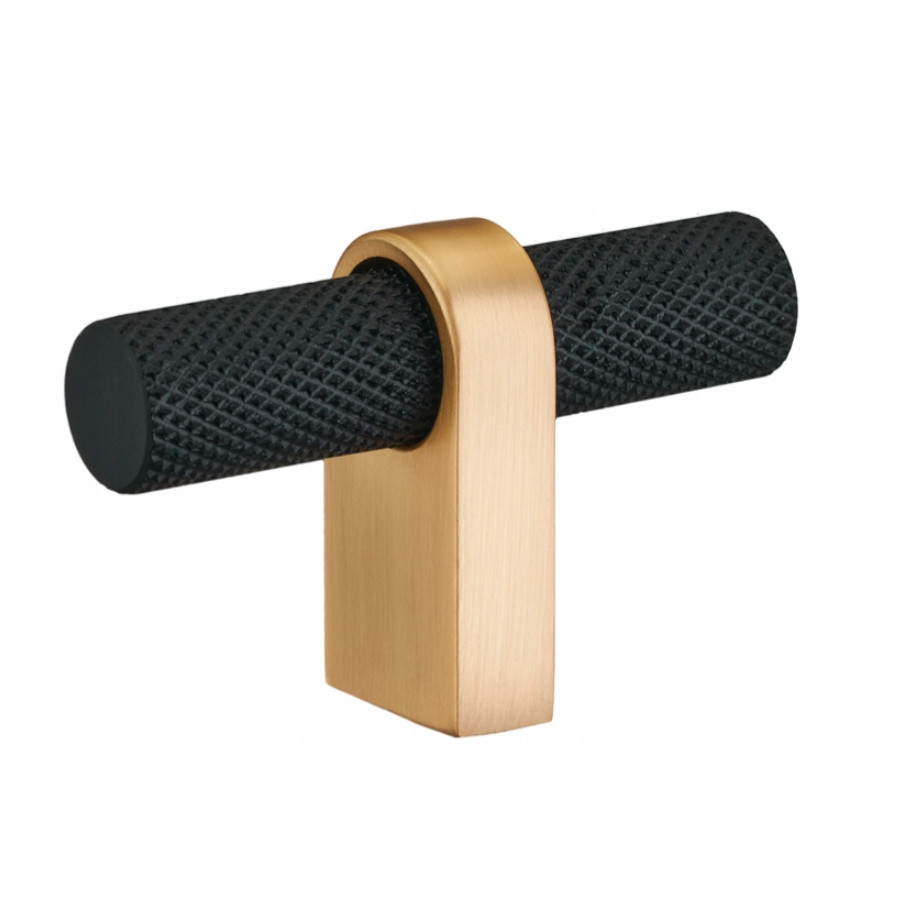 Uchwyt, gałka meblowa KAPI T-BAR, czarny mat + złoto szczotkowane