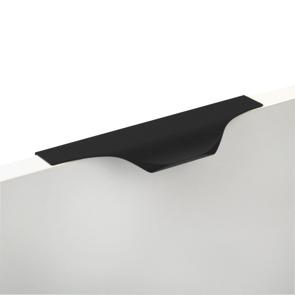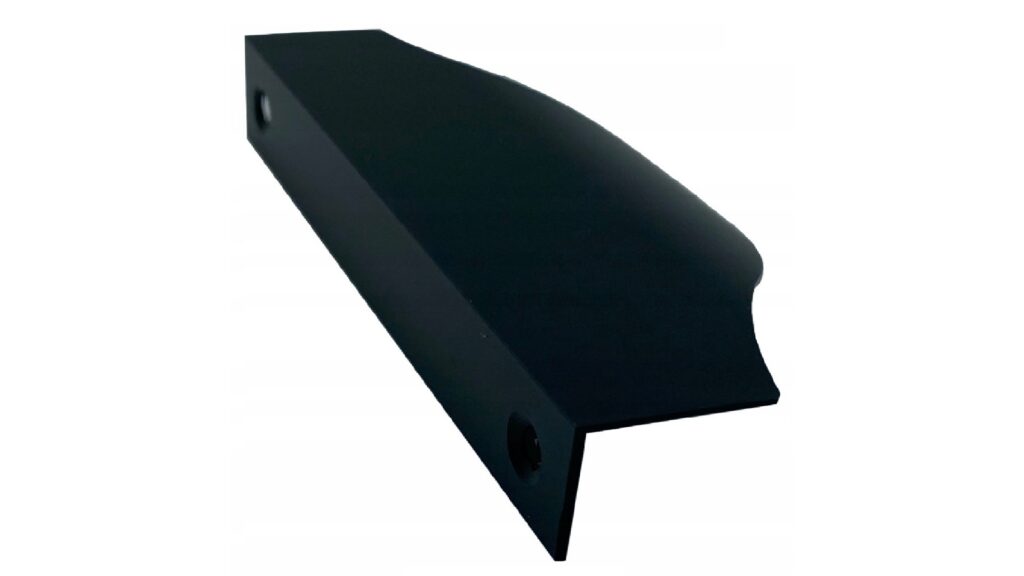 Uchwyt krawędziowy UA04 o minimalistycznym stylu i nowoczesnym wyglądzie, który jest przeznaczony do frontów meblowych. Jego ergonomiczny kształt zapewnia łatwe i komfortowe otwieranie drzwiczek.
