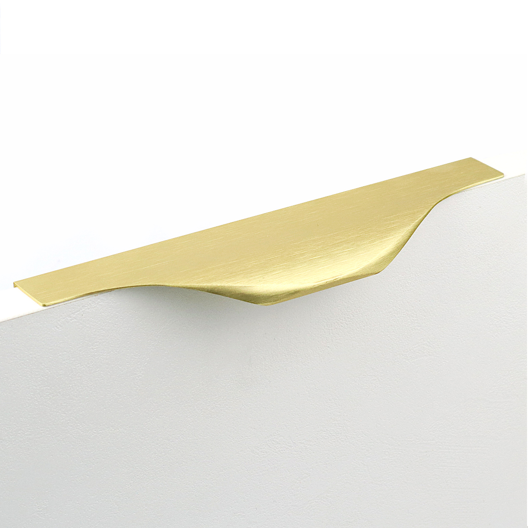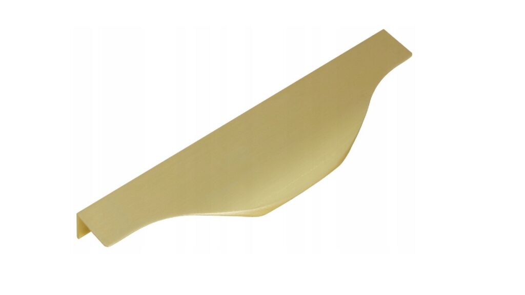 Uchwyt krawędziowy UA04 o minimalistycznym stylu i nowoczesnym wyglądzie, który jest przeznaczony do frontów meblowych. Jego ergonomiczny kształt zapewnia łatwe i komfortowe otwieranie drzwiczek.