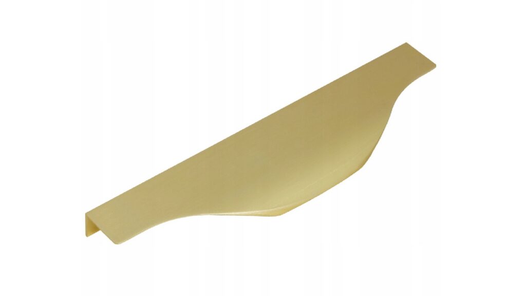 Uchwyt krawędziowy UA04 o minimalistycznym stylu i nowoczesnym wyglądzie, który jest przeznaczony do frontów meblowych. Jego ergonomiczny kształt zapewnia łatwe i komfortowe otwieranie drzwiczek.