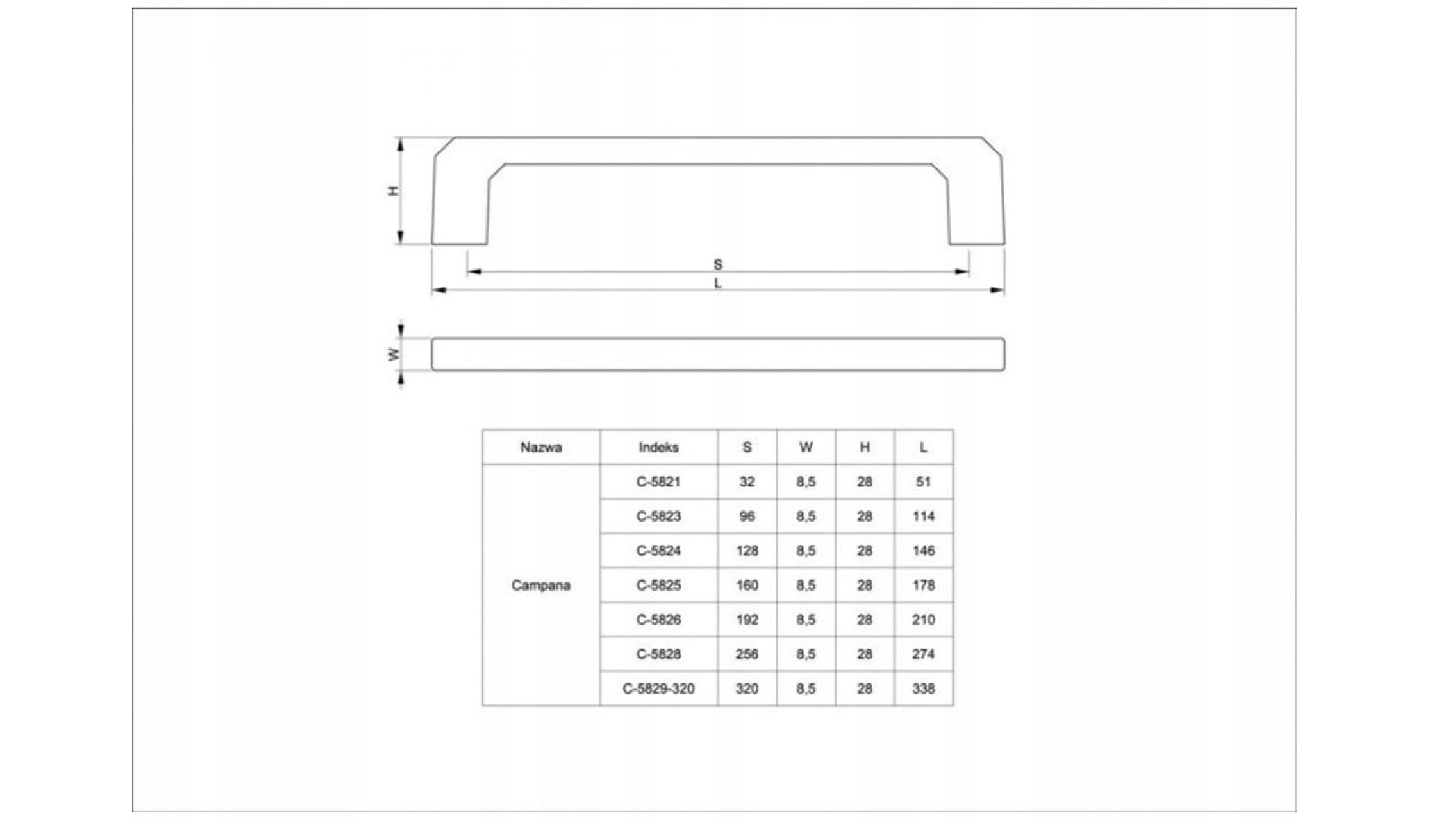 Uchwyt meblowy Campana C-5824, 128mm, aluminium