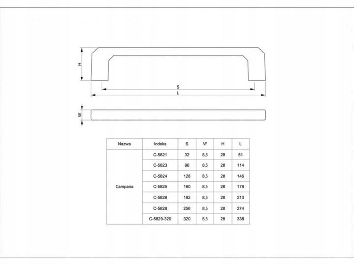 Uchwyt meblowy Campana C-5824, 128mm, biały połysk
