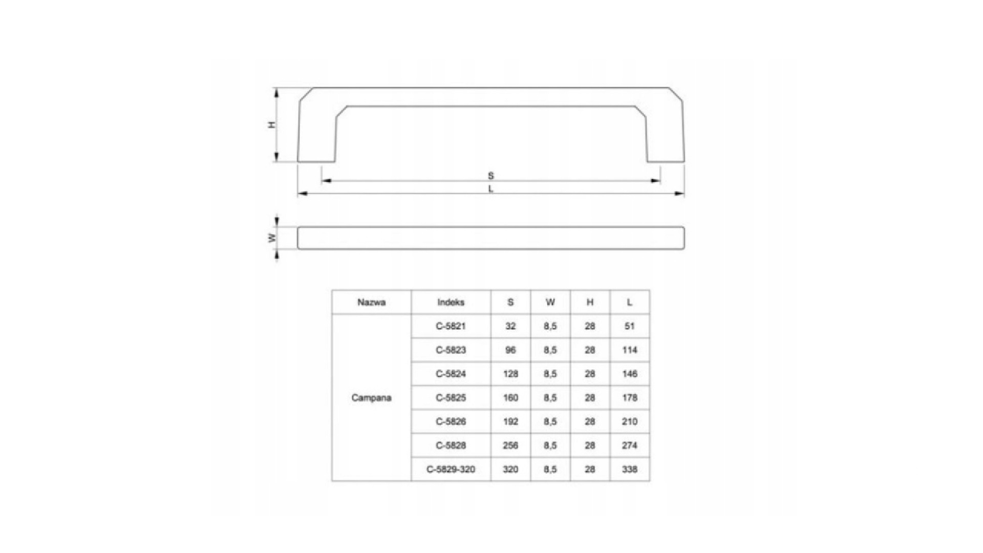 • Uchwyt meblowy Campana C-5826, 192mm, biały mat Uchwyt meblowy Campana C-5826, 192mm, biały mat