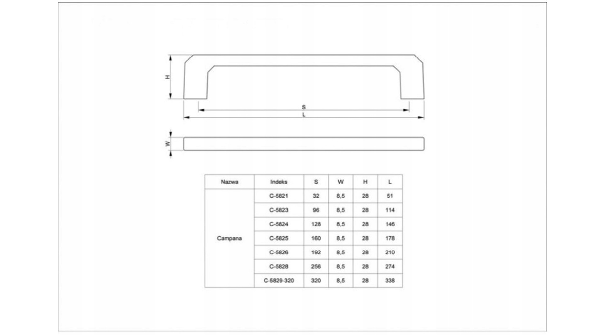 Uchwyt meblowy Campana C-5826, 192mm, chrom