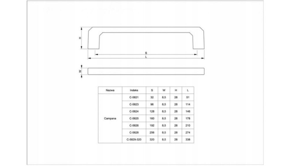 - Wysokość uchwytu: 28 mm