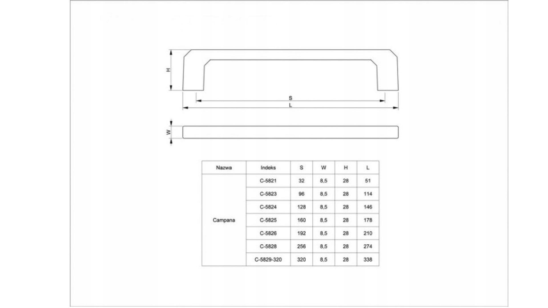 Uchwyt meblowy Campana C-5828, 256mm, aluminium