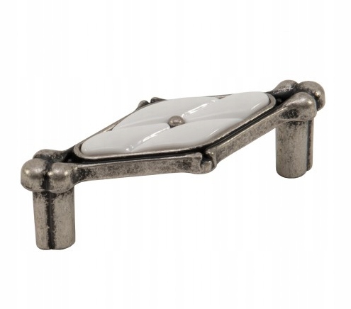 Uchwyt meblowy UP024, 64mm, stare srebro + porcelana