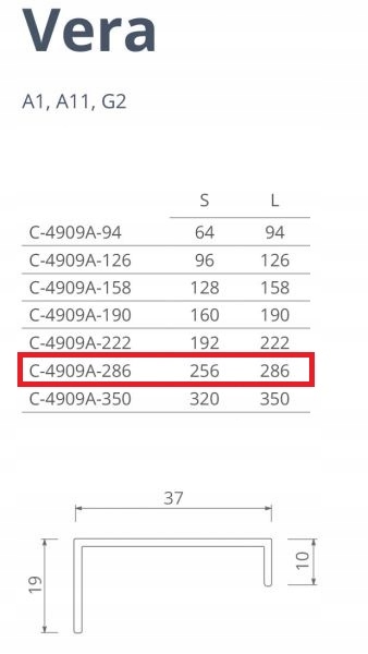 Uchwyt meblowy VERA C-4909A, 256mm, czarny połysk