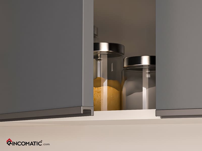- Uchwyt nie wymaga frezowania w płycie wystarczy przykręcić elementy montażowe i wcisnąć uchwyt.