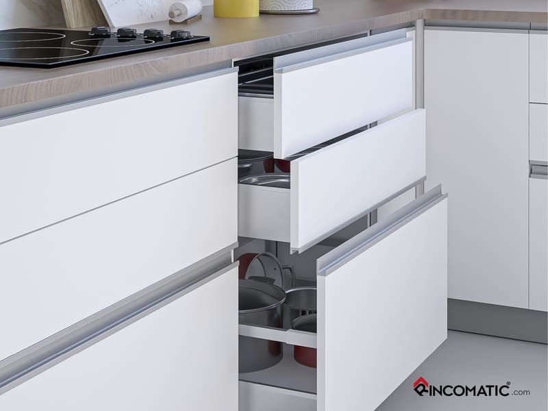 - Uchwyt nie wymaga frezowania w płycie wystarczy przykręcić elementy montażowe i wcisnąć uchwyt.