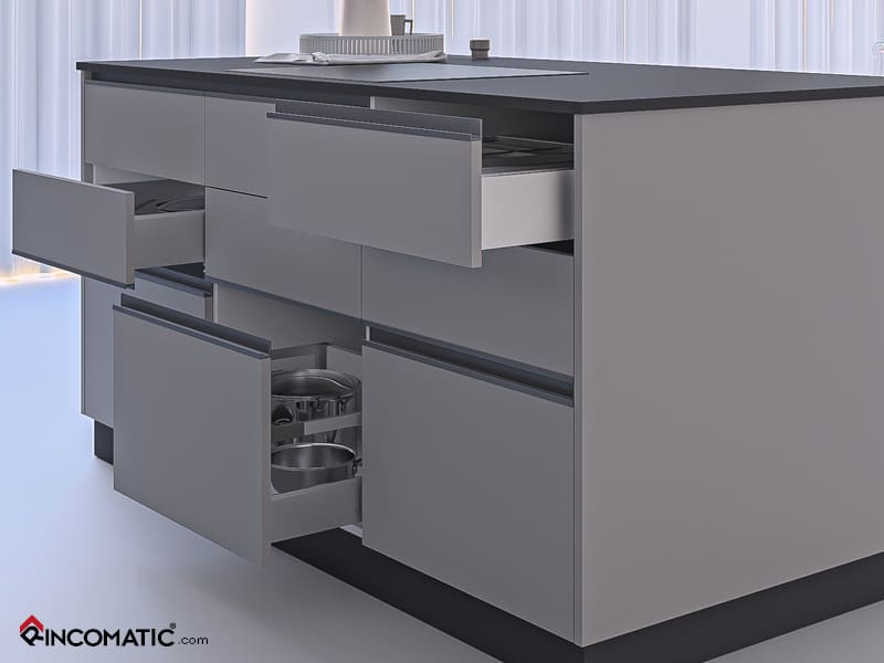 - Uchwyt nie wymaga frezowania w płycie wystarczy przykręcić elementy montażowe i wcisnąć uchwyt.