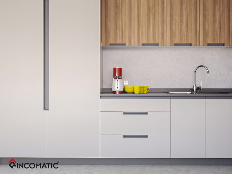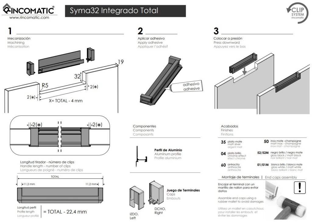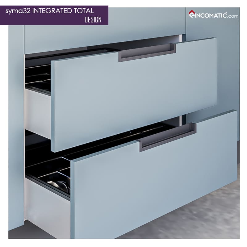 SYMA32 Integrado TOTAL, wyróżnia się nie tylko innowacyjnym montażem, ale także nowoczesnym designem. Składa się on z profilu krawędziowego oraz dwóch zaślepek, które montuje się wewnątrz krawędzi frontu. Dzięki temu produkt ten doskonale komponuje się ze współczesnymi stylami i zapewnia przyjemną estetykę.