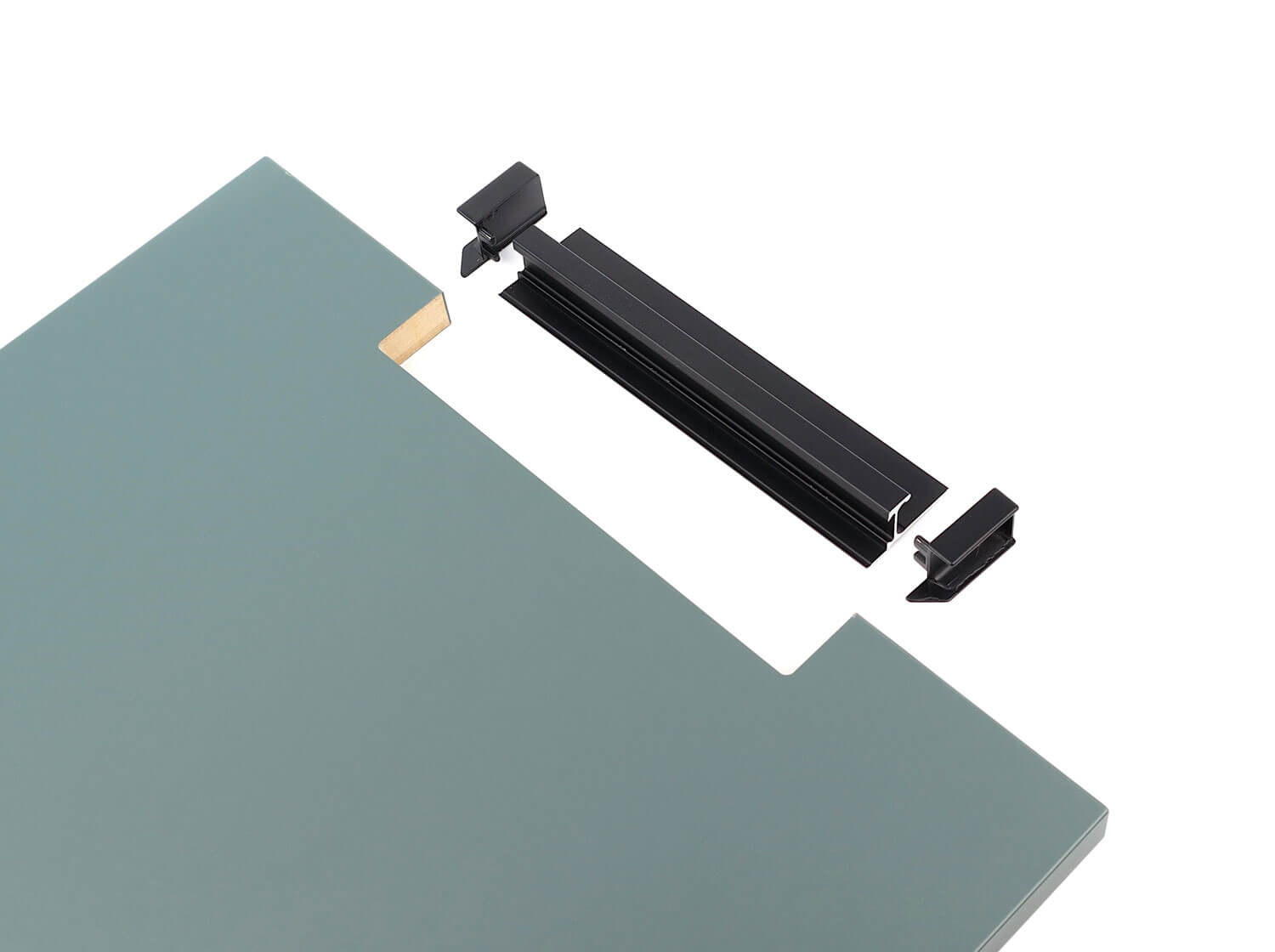 - Uchwyt składa się on z profilu krawędziowego oraz dwóch zaślepek, które montuje się wewnątrz krawędzi frontu