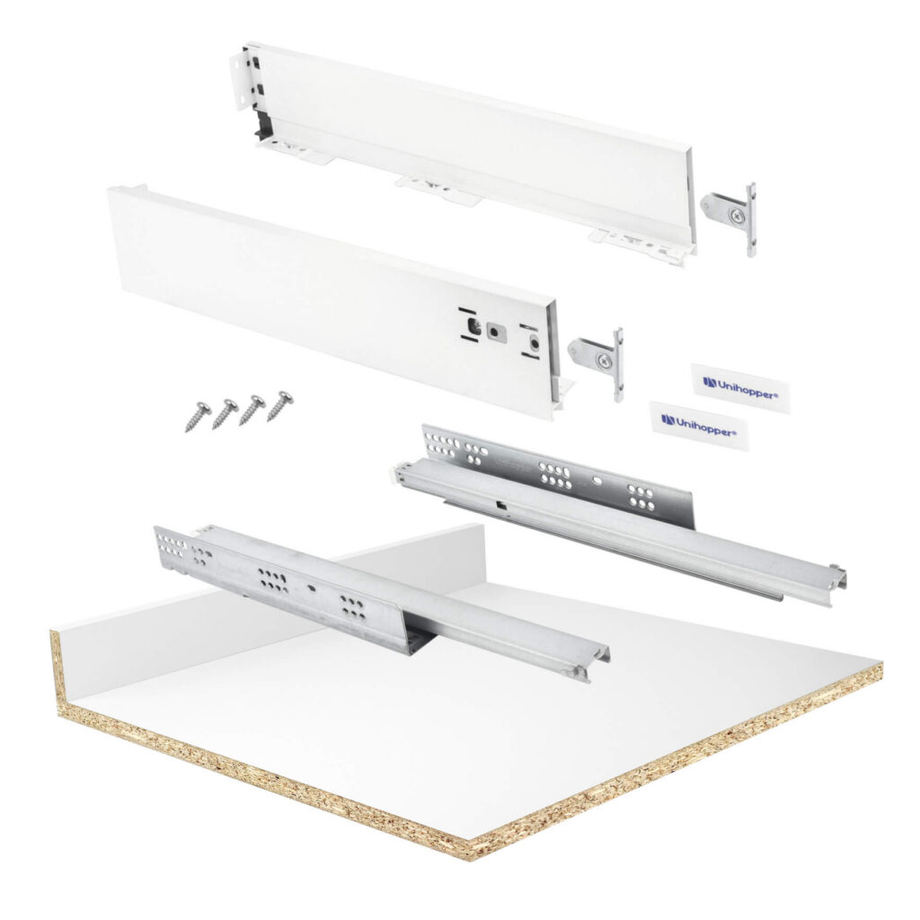 Szuflada kuchenna Unihopper 2D L-500 H80 to nowoczesne rozwiązanie, które doskonale wpisuje się w współczesne trendy na rynku meblarskim. Jej główną zaletą jest poprawa funkcjonalności, przy jednoczesnym minimalizmie ielegancji. Unihopper 2D wyróżnia się cienkimi bokami, które nadają mu lekkości i subtelności.