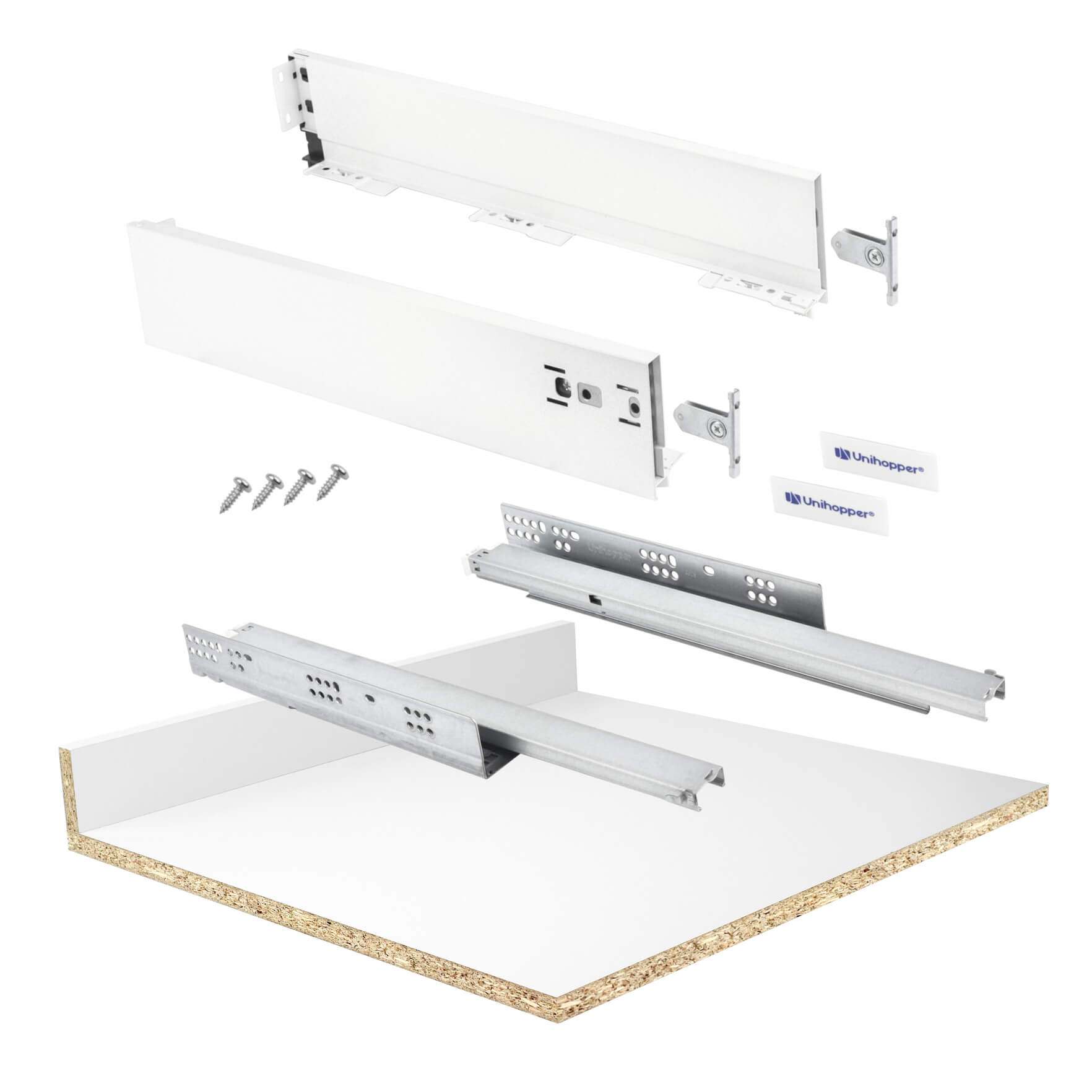 Unihopper - Szuflada cienkościenna 2D, szer. 600 L-500 H80mm - Biała