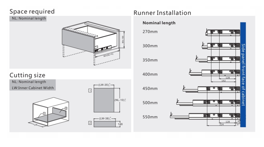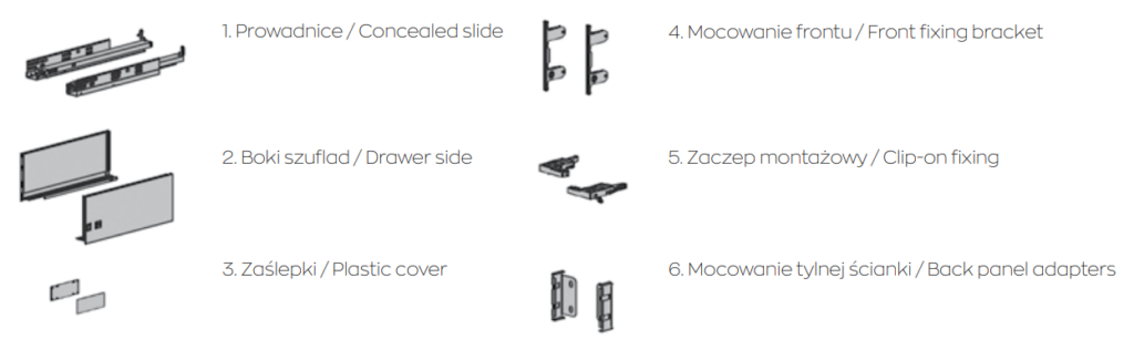 - Łatwy montaż: Montaż szuflady jest prosty i nie wymaga frezowania, co sprawia, że proces instalacji jest szybki i wygodny.