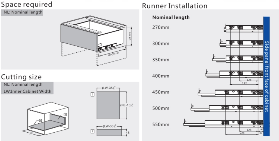 - Łatwy montaż: Montaż szuflady jest prosty i nie wymaga frezowania, co sprawia, że proces instalacji jest szybki i wygodny. ale