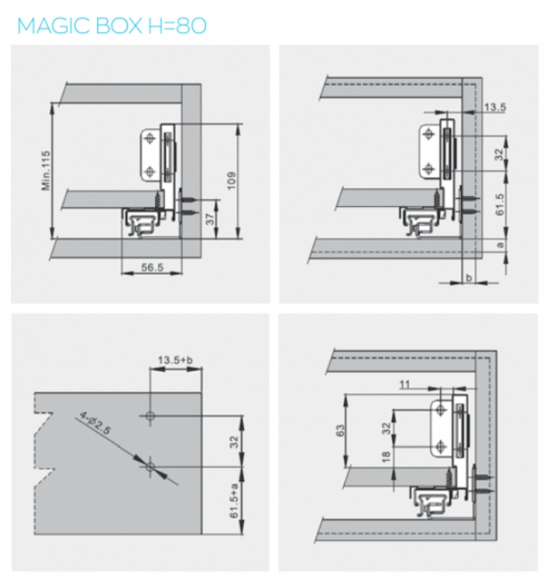 - Łatwy montaż: Montaż szuflady jest prosty i nie wymaga frezowania, co sprawia, że proces instalacji jest szybki i wygodny.