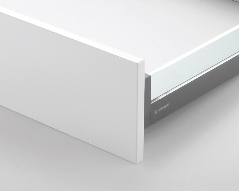 Nowoczesna szuflada cienkościenna Unihopper Glass, L-450 H80mm -antracyt , do wszystkich typów mebli.