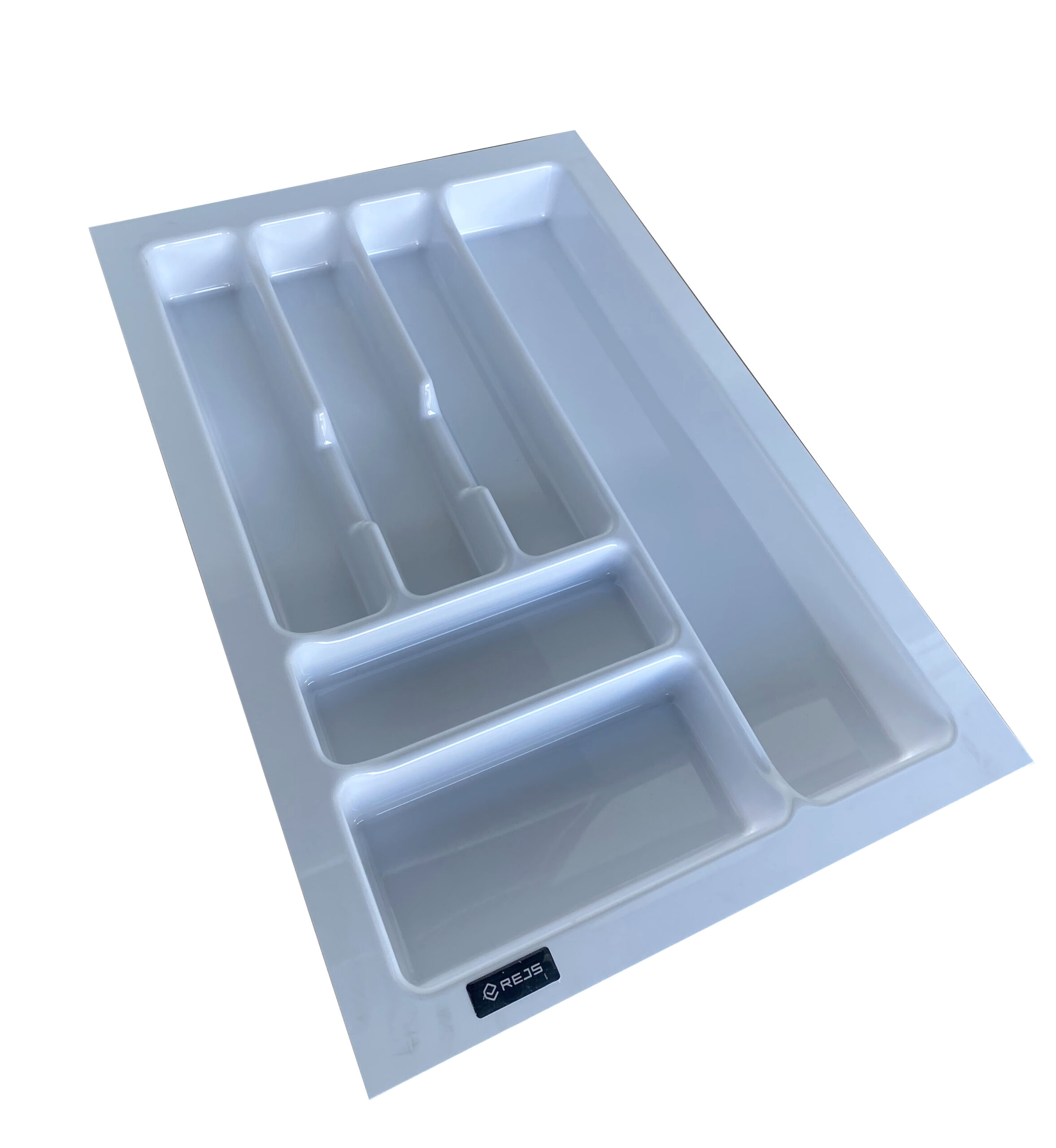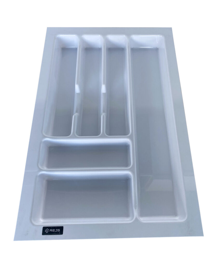 Kolor: Biały połysk Szerokość: 33,5 cm Głębokość: 49 cm Wysokość wkładu: ok. 5 cm Organizer można docinać do wymiarów szuflady.