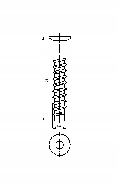 Wkręt konfirmat do drewna 6,4x50mm 1000sz + wiertło