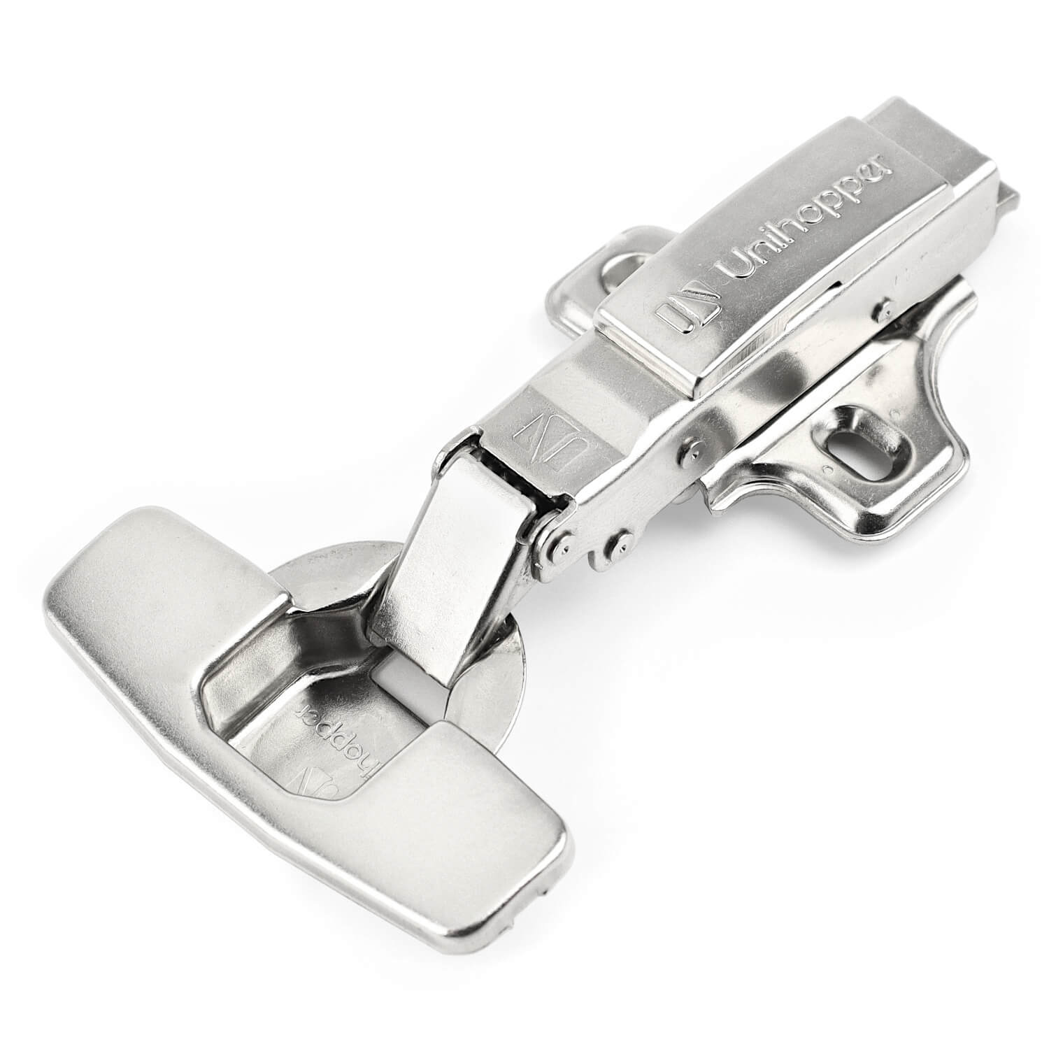 W tej ofercie polecamy wysokiej jakości, solidnie wykonany zawias nakładany cenionej marki UNIHOPPER.  Kąt otwarcia prezentowanego zawiasu wynosi 110°. Produkt dostępny w komplecie z prowadnikiem i zaślepkami na puszkę oraz ramię.  Dodatkowo posiada wygodną funkcję regulacji 3D. Ten funkcjonalny i niezwykle wytrzymały zawias znajduje szerokie zastosowanie w nowoczesnych frontach meblowych.