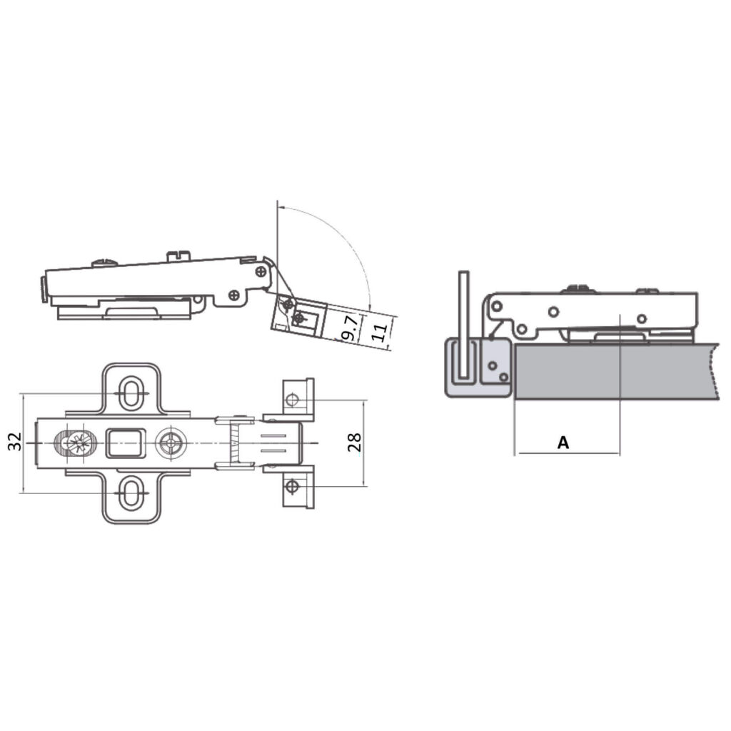 Zawias nakładany do wąskiej ramki aluminiowej R1, w kpl z prowadnikiem